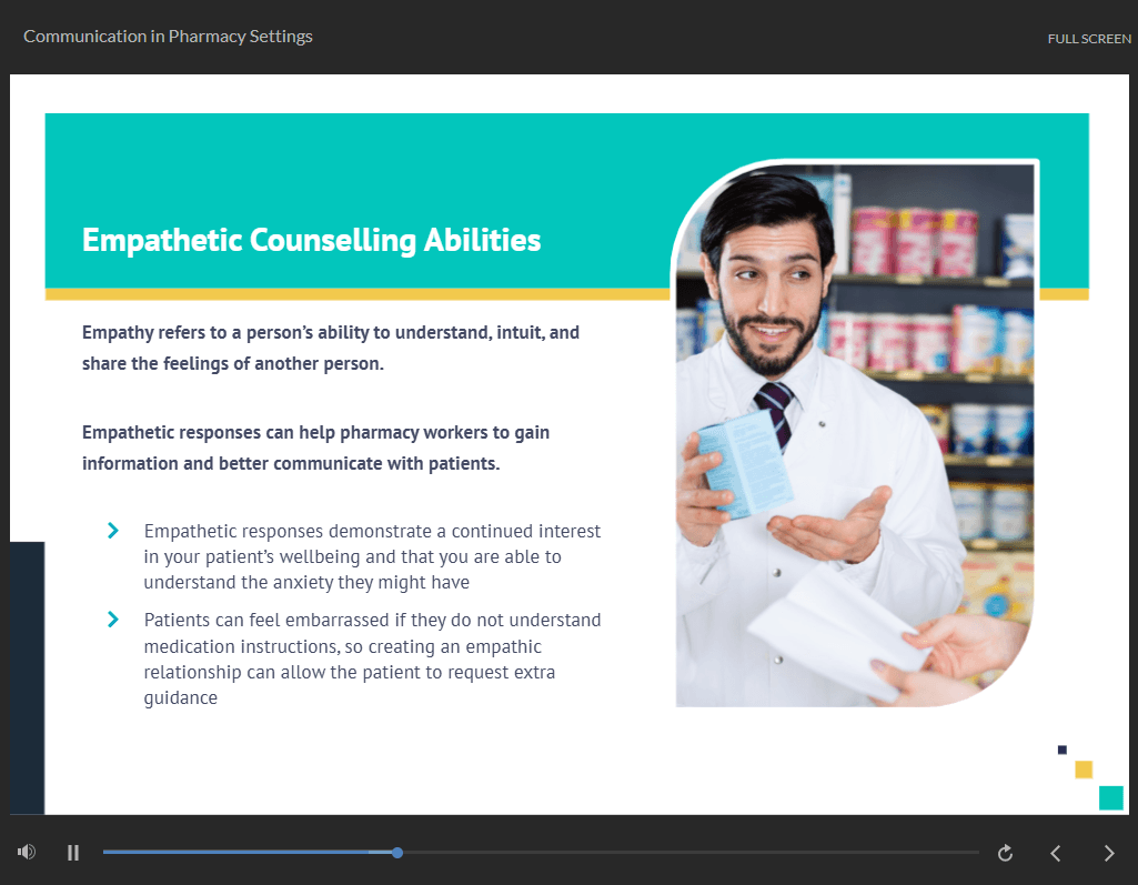 | Module 4: Communication in Pharmacy Settings | 00:15:00 | ||